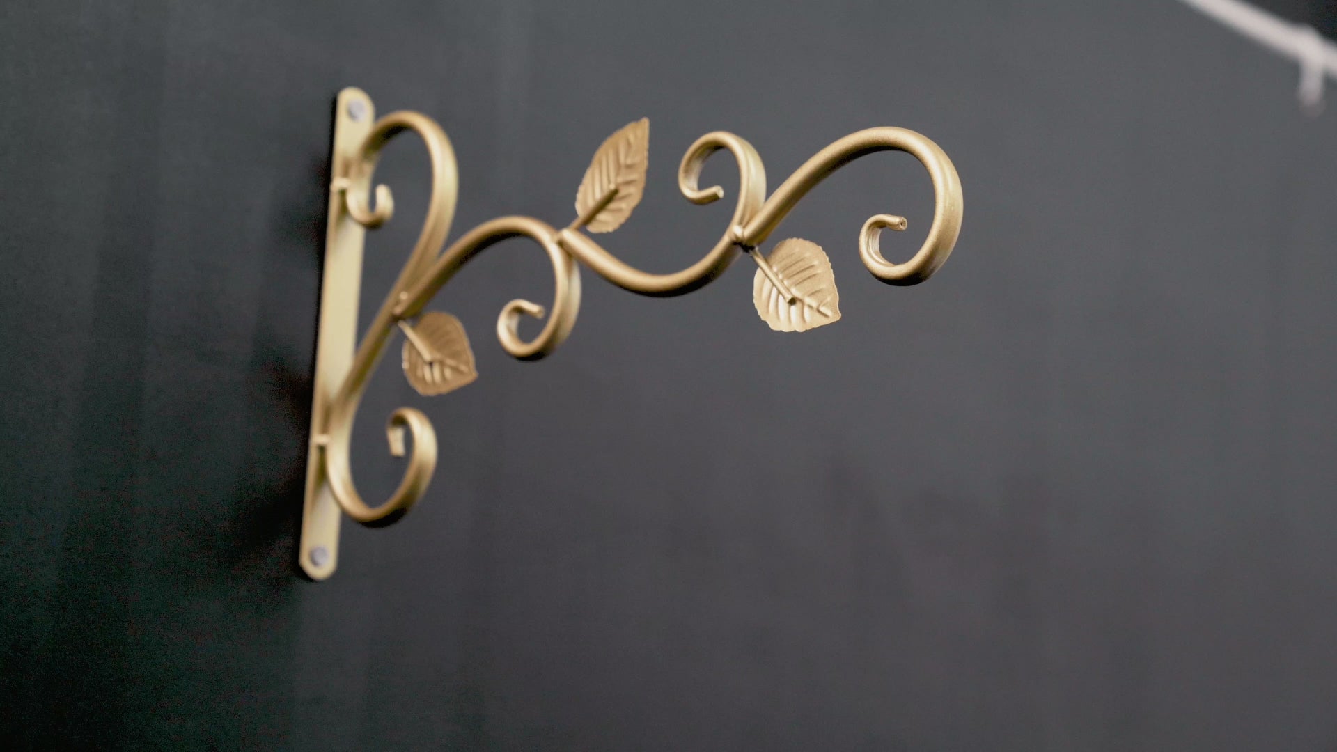 The Kinetic Art Hangers are made from durable iron that has been powder coated with either black or gold paint.