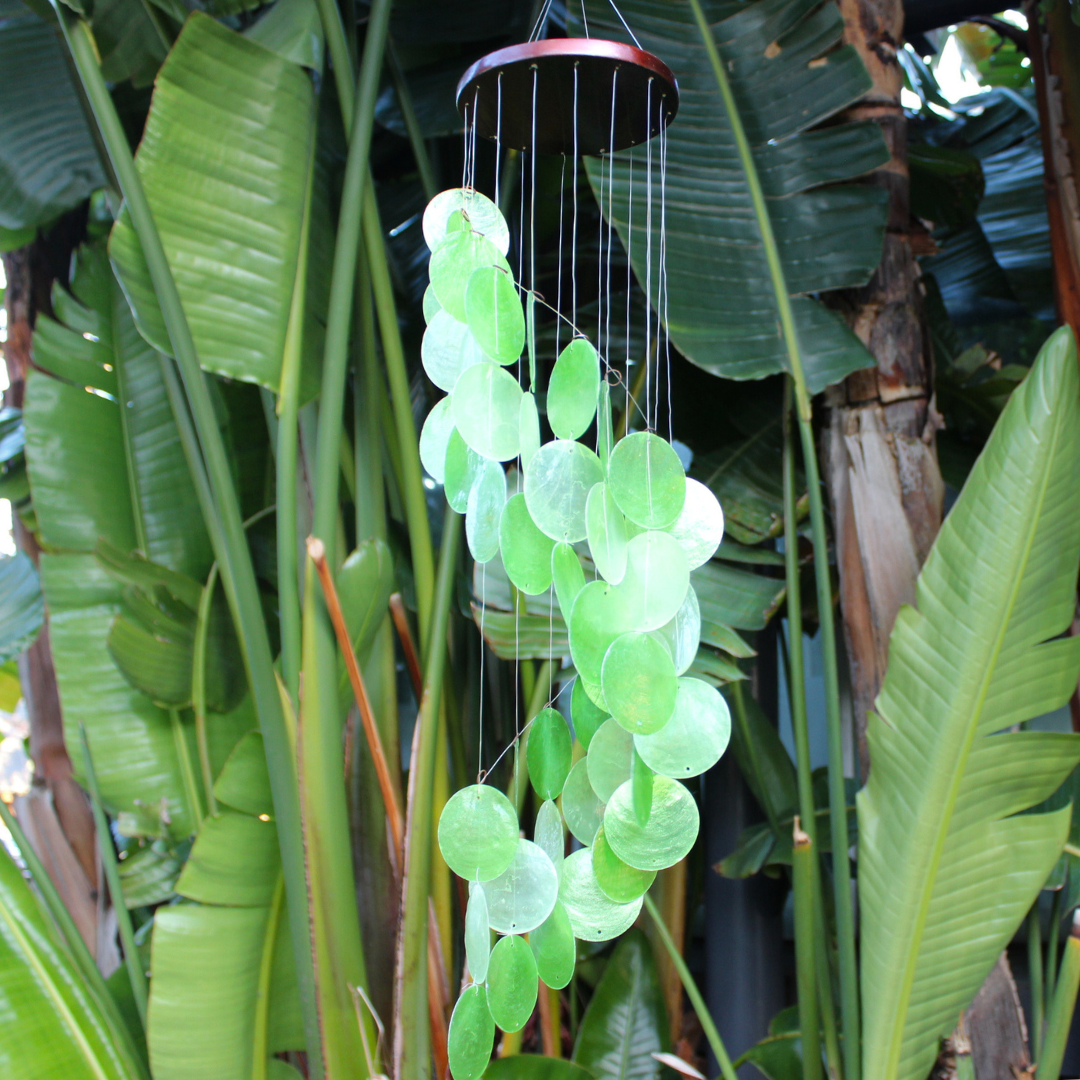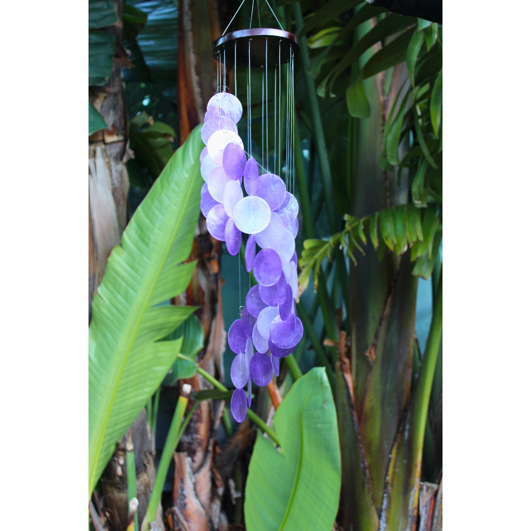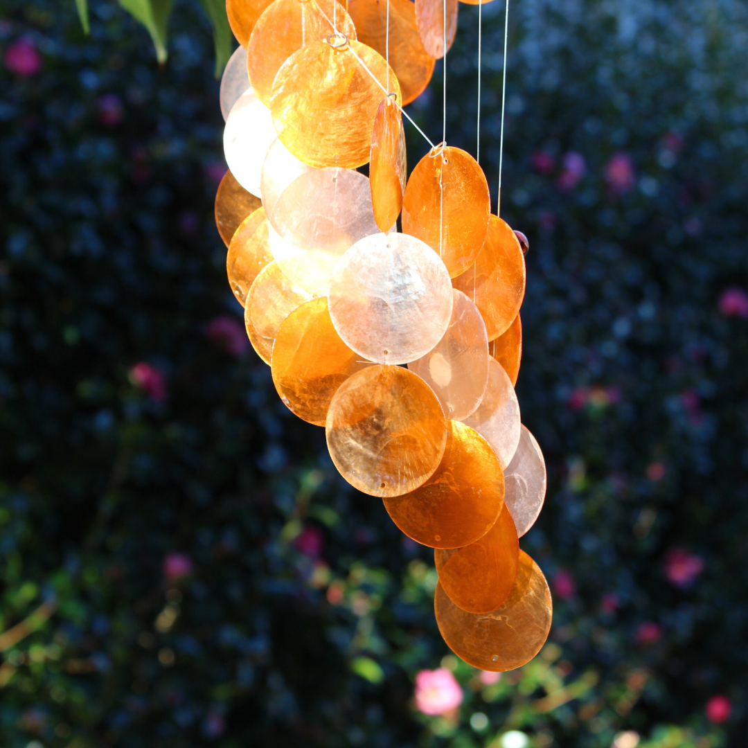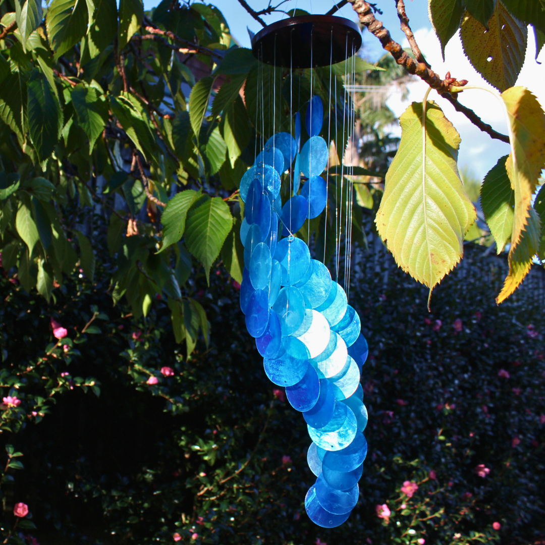 Note: Our shell wind chimes are best suited to a low wind area to avoid tangling.