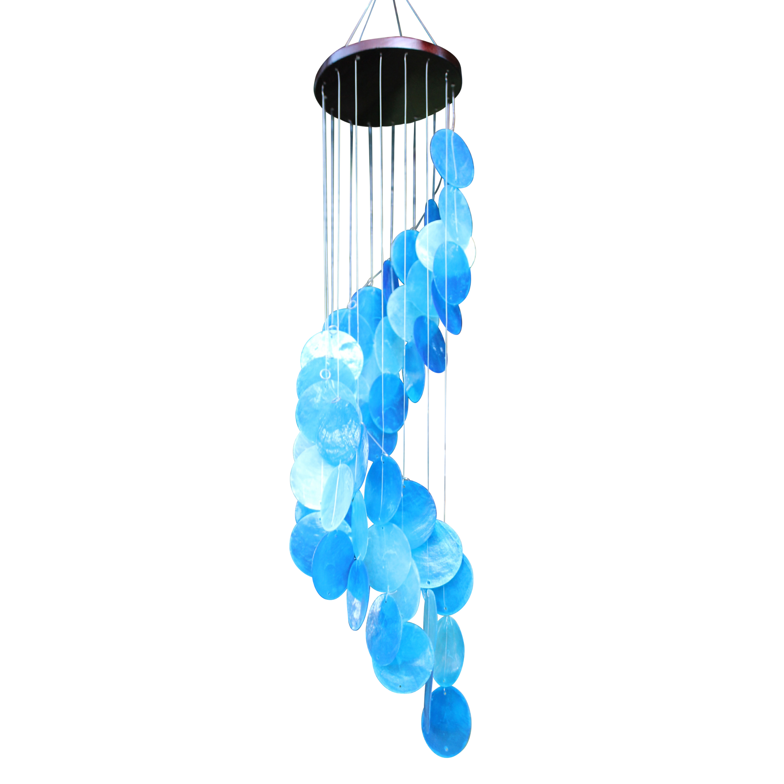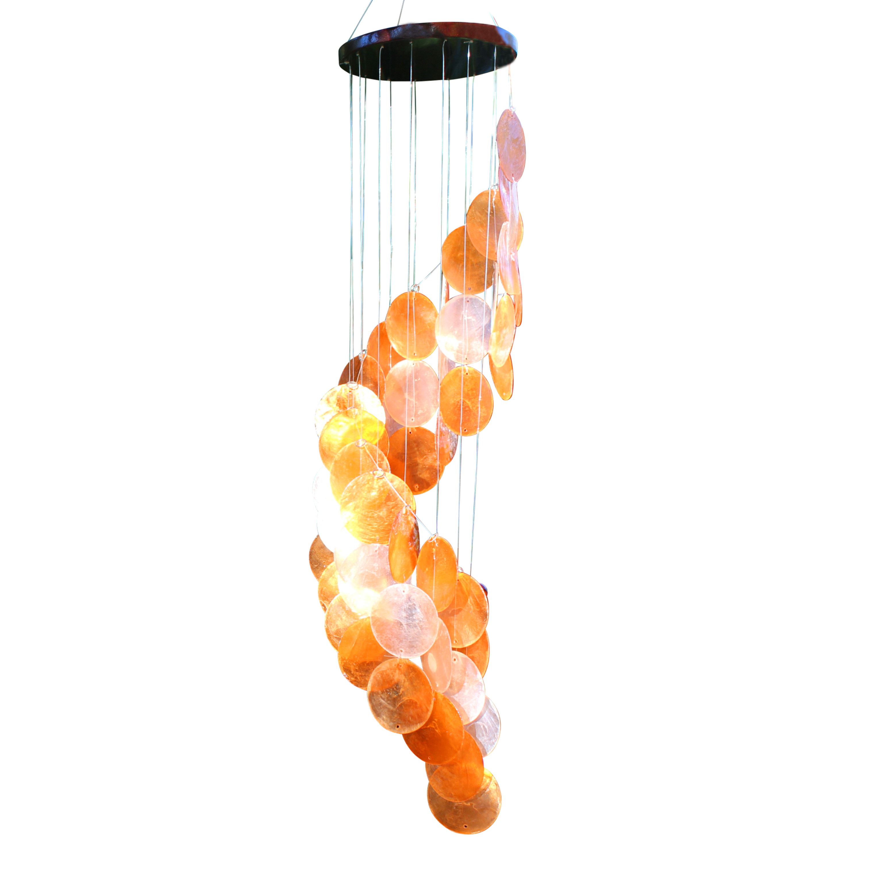 This stunning design features capiz shells cascading down from multiple strings, to create a flowing and beautiful effect. Hang in a sheltered spot for a gorgeous shimmering effect.