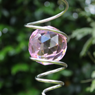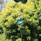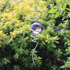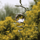 By pulling the wind spinner down, it is stabilised in the wind. Prepare to be hypnotised as the solid glass orb appears to magically climb the metal spiral as it spins.