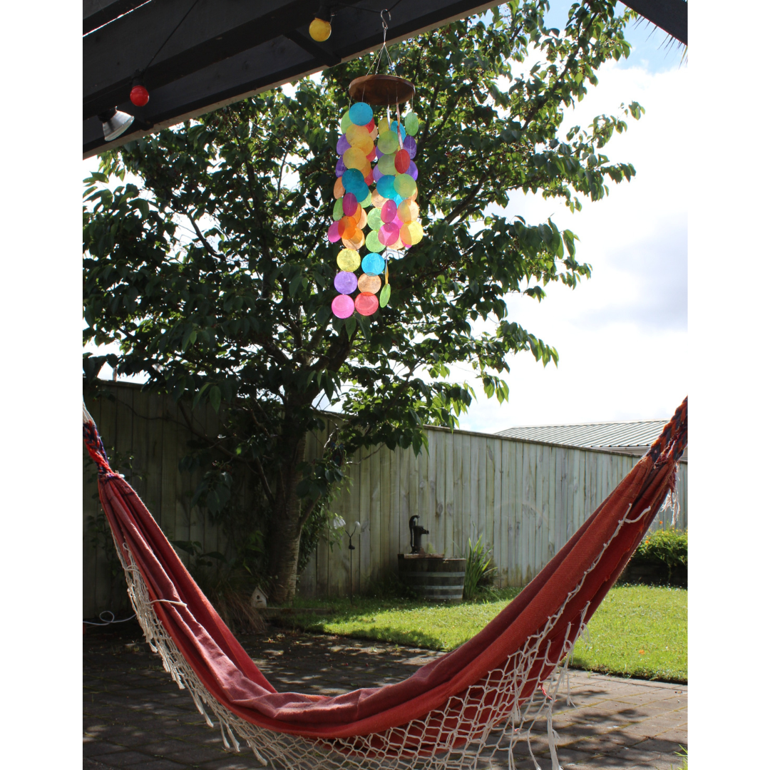 Note: Our shell wind chimes are best suited to a low wind area to avoid tangling.